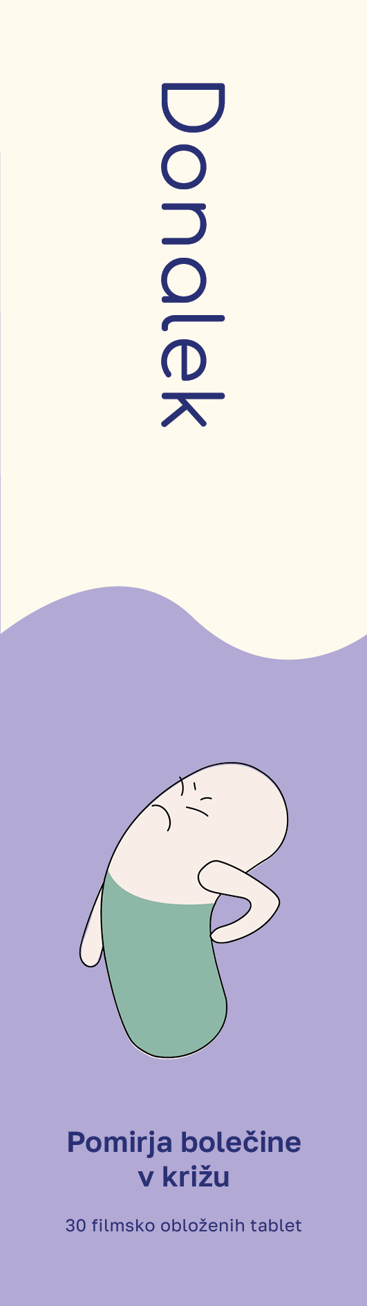 V vsaki škatli so trije blistri. Na zadnji strani je naziv tablet in prostor za zapiske.