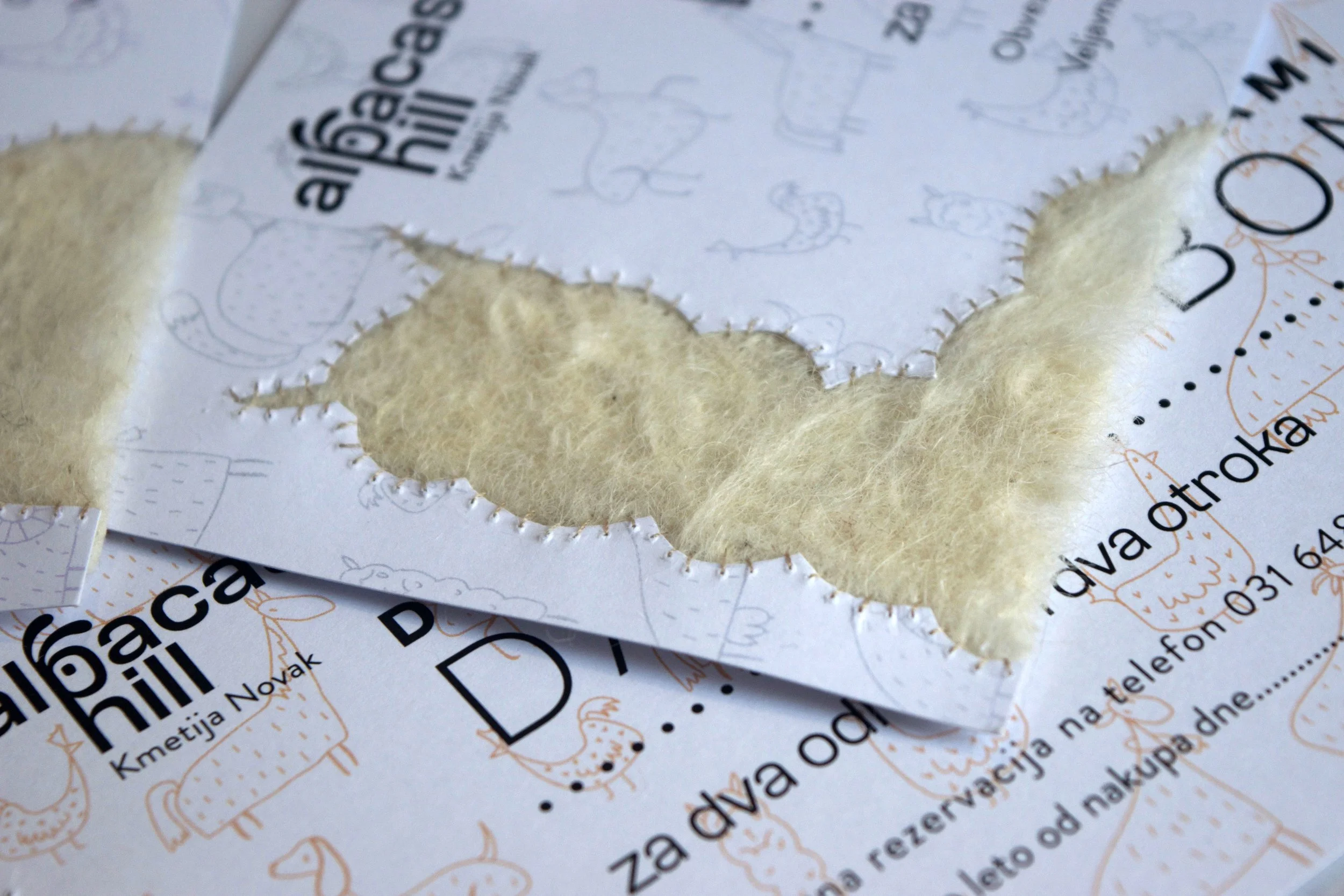 Prvi različici smo dodali polsteno alpakino volno. Ta bonu daje posebno taktilno vrednost.